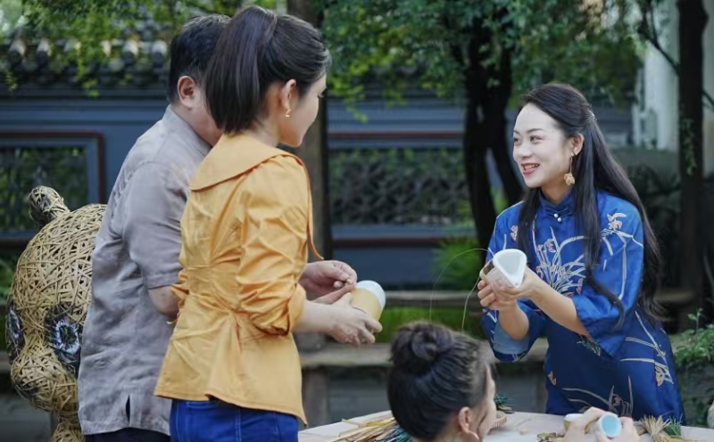 當然,文旅發(fā)展成效如何,最直接的體現(xiàn)是能否讓村民受益。村民倪龍2023年返鄉(xiāng),與妻子共同辦起民宿“竹里香居”。竹編屏風、竹制燈罩,將民宿裝點得古樸雅致?!盀榱藢⒅裎幕捅镜卮ㄎ髁直P的民俗生活緊密結合,我們特意設計了這種民宿風格。如果竹編藝人需要展示作品,我們也會提供場地,畢竟民宿也是村里的‘文化名片’?!蹦啐堈f。