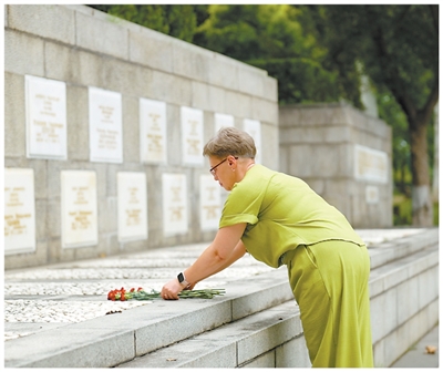 葉蓮娜在武漢蘇聯(lián)空軍志愿隊烈士墓祭奠外祖父舒斯特爾。