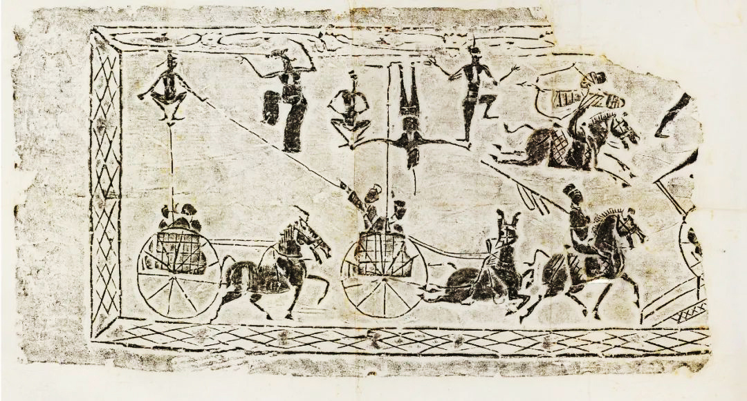 斜索戲車畫像磚以線面結(jié)合的手法分層敘事