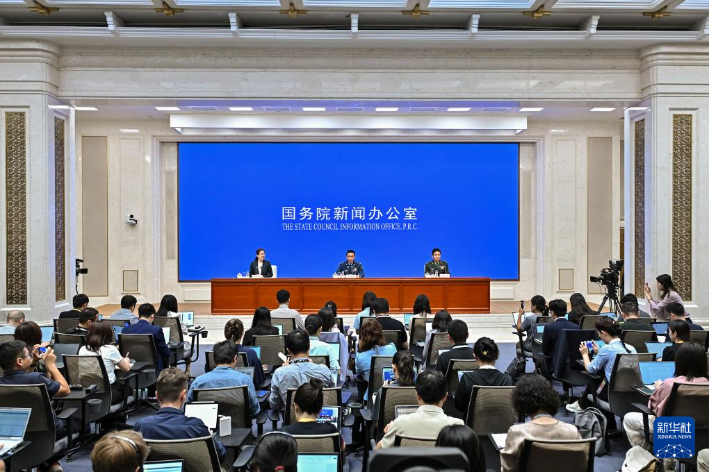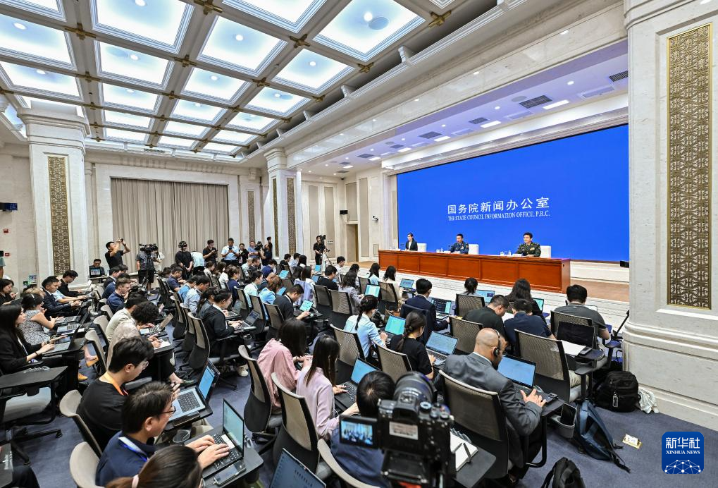 8月20日,國務(wù)院新聞辦公室在北京舉行新聞發(fā)布會,閱兵領(lǐng)導(dǎo)小組辦公室副主任、中央軍委聯(lián)合參謀部作戰(zhàn)局少將副局長吳澤棵,中國人民解放軍中部戰(zhàn)區(qū)閱兵指揮機構(gòu)辦公室常務(wù)副主任、政治工作部少將副主任徐貴忠介紹閱兵準備工作有關(guān)情況,并答記者問。新華社記者 李鑫 攝