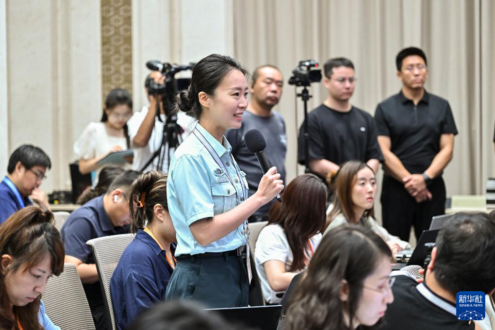 8月20日,國務(wù)院新聞辦公室在北京舉行新聞發(fā)布會,閱兵領(lǐng)導(dǎo)小組辦公室副主任、中央軍委聯(lián)合參謀部作戰(zhàn)局少將副局長吳澤棵,中國人民解放軍中部戰(zhàn)區(qū)閱兵指揮機構(gòu)辦公室常務(wù)副主任、政治工作部少將副主任徐貴忠介紹閱兵準備工作有關(guān)情況,并答記者問。這是記者在現(xiàn)場提問。新華社記者 李鑫 攝