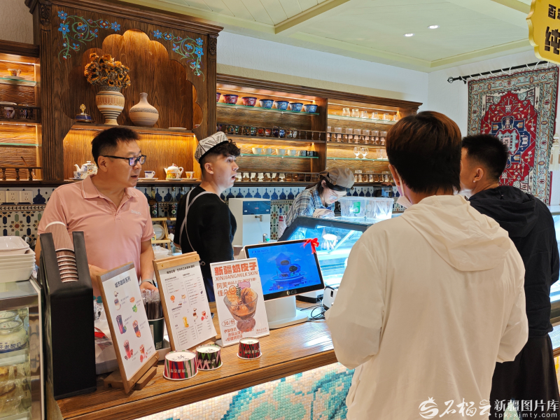 游客在冰激凌店內(nèi)選購甜品。石榴云/新疆日報(bào)記者 宋海波攝