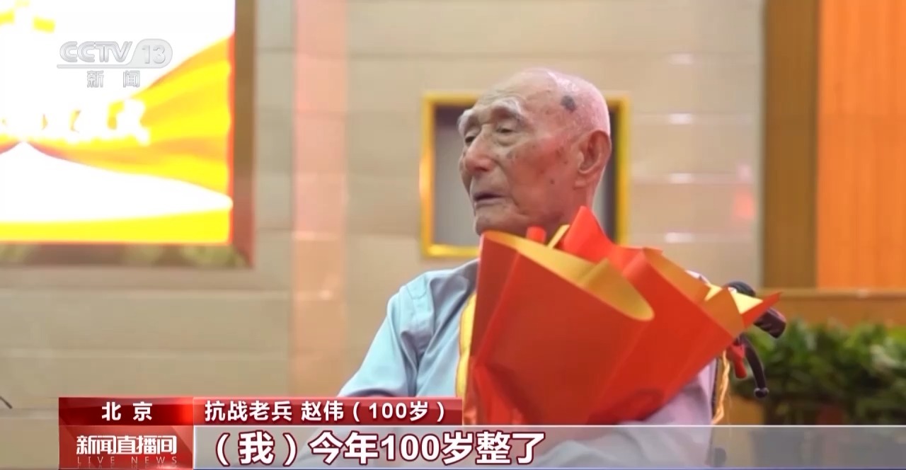 抗戰(zhàn)老兵 趙偉(100歲):我今年100歲了,8月15日就是100歲,國(guó)家又給我一個(gè)生日禮物。
