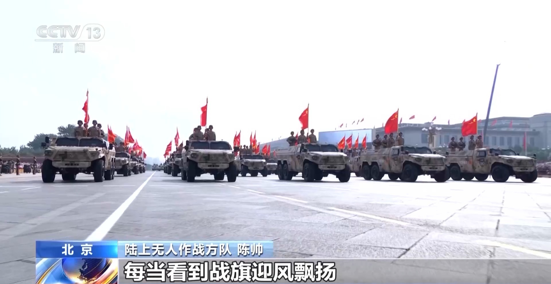 陸上無(wú)人作戰(zhàn)方隊(duì) 張雨風(fēng):如今,我們擁有了先進(jìn)的武器裝備,更要牢記中華民族一路走來(lái)的艱辛,牢記人民軍隊(duì)使命初心,弘揚(yáng)好抗戰(zhàn)偉大精神,把手中先進(jìn)武器裝備轉(zhuǎn)化為部隊(duì)實(shí)際作戰(zhàn)能力,聚力打贏實(shí)現(xiàn)建軍一百年奮斗目標(biāo)攻堅(jiān)戰(zhàn)。