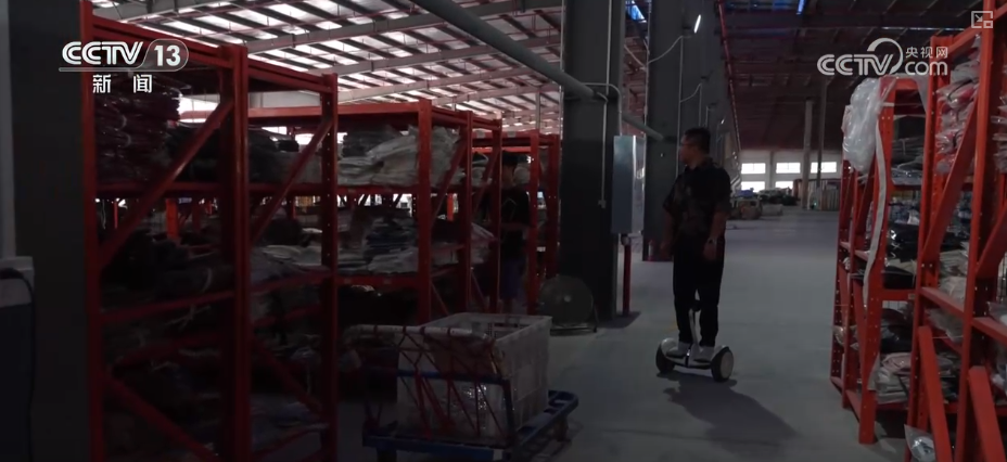 當(dāng)記者在天門服裝產(chǎn)業(yè)園里碰到費(fèi)文的時(shí)候,他正騎著電動(dòng)平衡車在庫(kù)房的貨架之間來回穿梭。