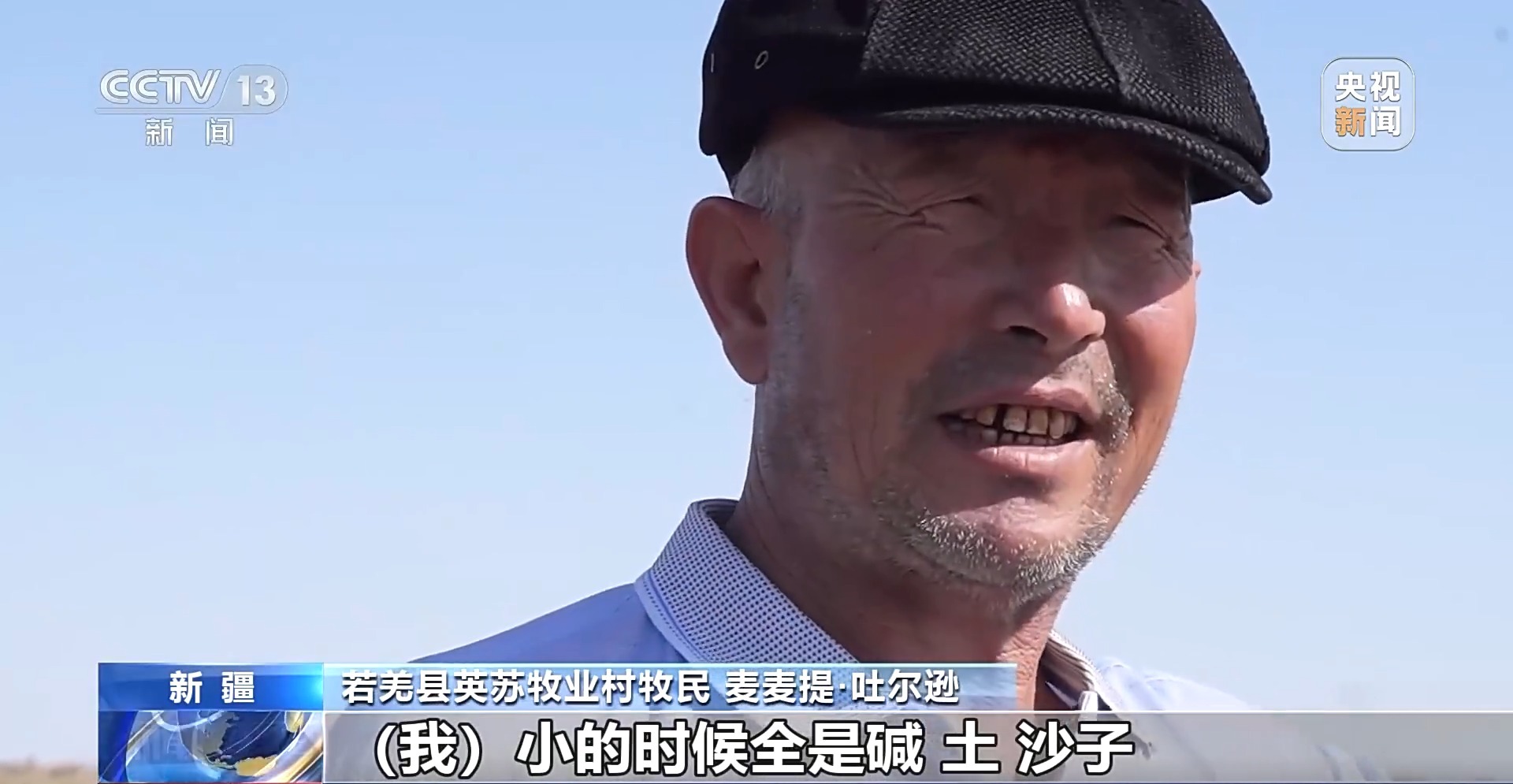 若羌縣英蘇牧業(yè)村牧民 麥麥提·吐爾遜:我小的時候全是堿、土、沙子,人走都走不動。羊沒水,也沒草,死在這個地方了。