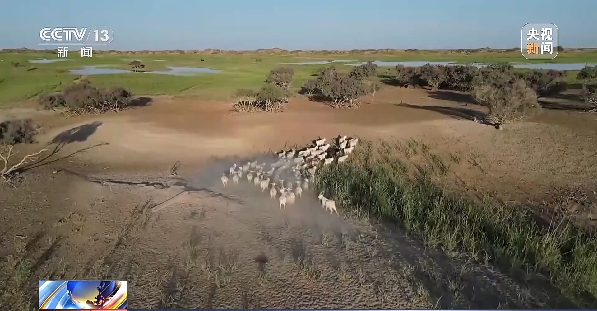 總臺央視記者 文為明:在我身后,無人機緩緩升起的地方是一片果園。很難想象,就在短短半年前,這里還是一片漫漫黃沙。而如今,已經(jīng)變成了生機勃勃的綠洲。