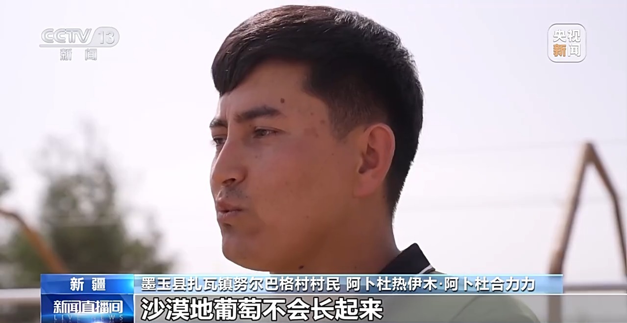 墨玉縣扎瓦鎮(zhèn)努爾巴格村村民 阿卜杜熱伊木·阿卜杜合力力:別人說你們是傻子嗎,你們腦子有問題,沙漠地葡萄不會長起來。