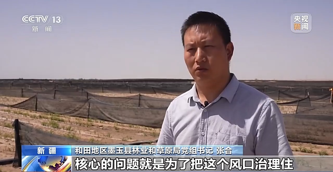 和田地區(qū)墨玉縣林業(yè)和草原局黨組書記 張合:我們選擇這塊區(qū)域鎖邊加厚,核心的問題就是為了把這個風口治理住,減少風沙對綠洲內部的侵蝕。