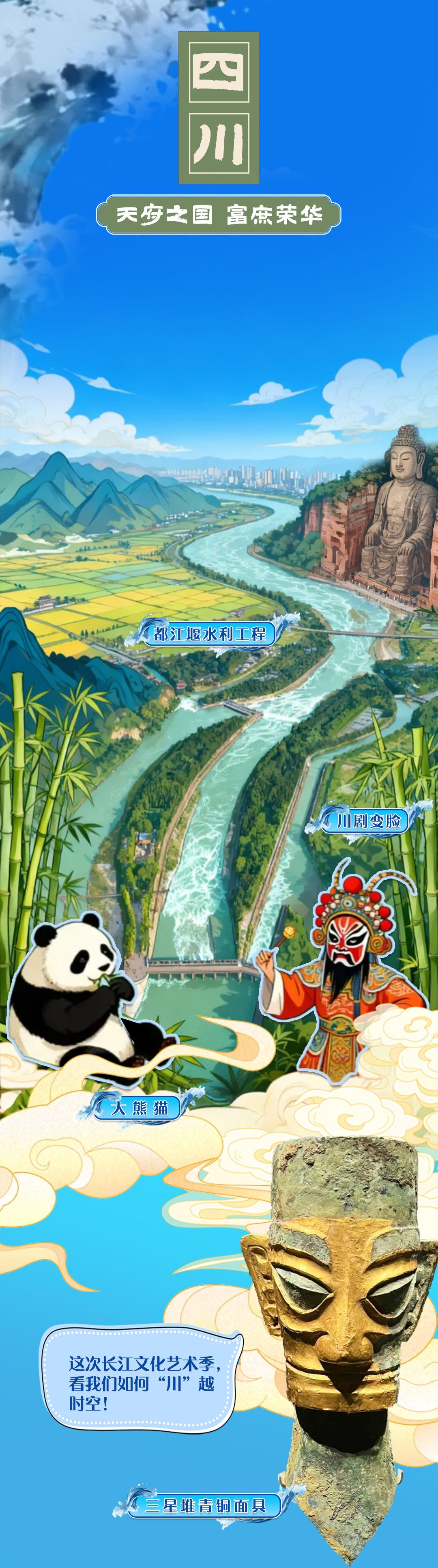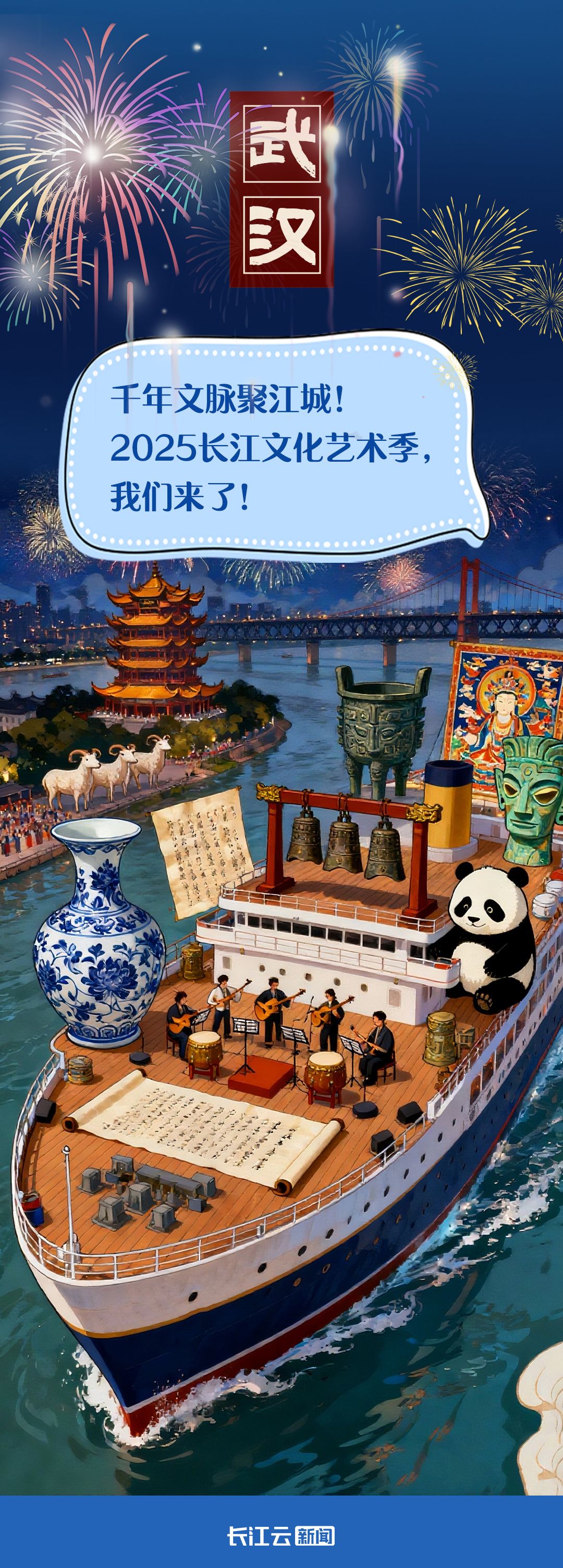 溯流而上,聽(tīng)曾侯乙編鐘奏響千年清音,看三星堆神樹閃耀古蜀智慧;與熊貓漫步蜀地竹林……今天(9月12日),2025長(zhǎng)江文化藝術(shù)季即將在武漢盛大啟幕,讓我們跟著沿江各地的國(guó)寶一起共赴這場(chǎng)跨越山河的藝術(shù)盛宴!