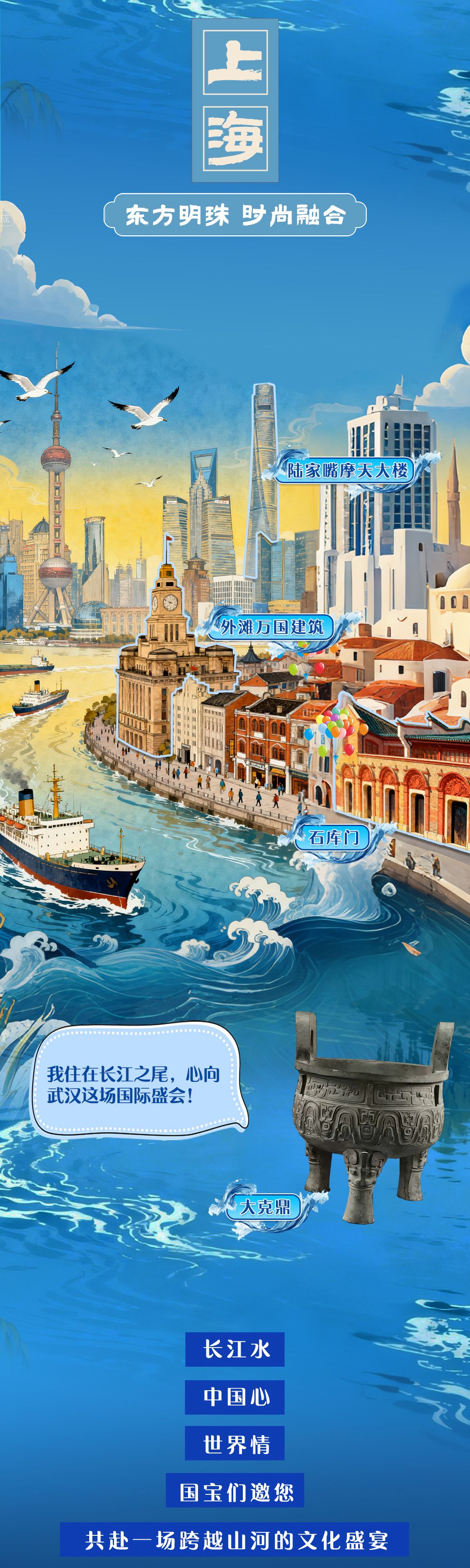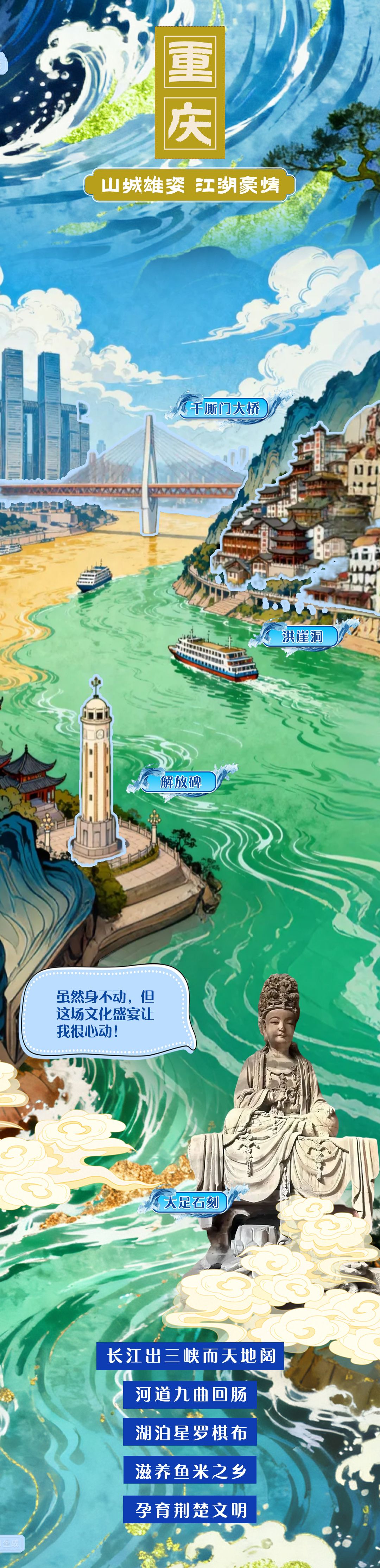 6300余公里奔騰,5400多米跌宕。長(zhǎng)江,是一條流淌著詩(shī)意的文明長(zhǎng)河,每一朵浪花都是文化的結(jié)晶。