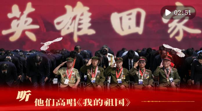 在沈陽(yáng)抗美援朝烈士陵園,幾位志愿軍老兵唱起了《我的祖國(guó)》。他們用歌聲迎接戰(zhàn)友回家。