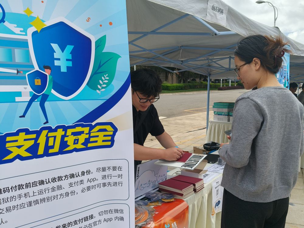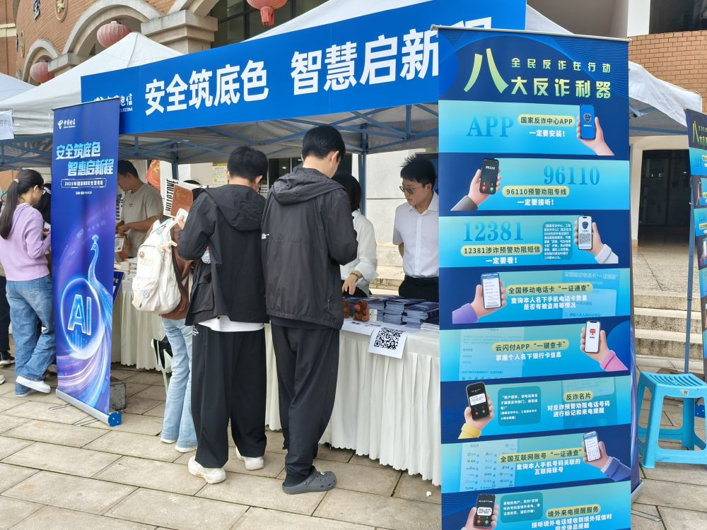 校園的露天廣場上還安排有網(wǎng)絡(luò)安全知識趣味問答活動,吸引學生參與,讓他們在輕松愉快的氛圍中鞏固了反詐知識。還有工作人員向路過的學生發(fā)放反詐宣傳手冊。
