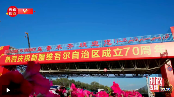 中共中央總書記、國(guó)家主席、中央軍委主席習(xí)近平率中央代表團(tuán)23日下午乘專機(jī)抵達(dá)烏魯木齊,出席新疆維吾爾自治區(qū)成立70周年慶?;顒?dòng)。14時(shí)20分許,習(xí)近平乘坐的專機(jī)在天山國(guó)際機(jī)場(chǎng)降落,等候在停機(jī)坪的新疆各族各界群眾熱烈歡呼。習(xí)近平走下舷梯時(shí),少先隊(duì)員獻(xiàn)上鮮花。各族群眾代表身著民族服飾,載歌載舞,歡迎總書記的到來(lái),表達(dá)對(duì)總書記的衷心祝福。
