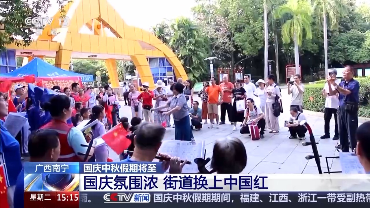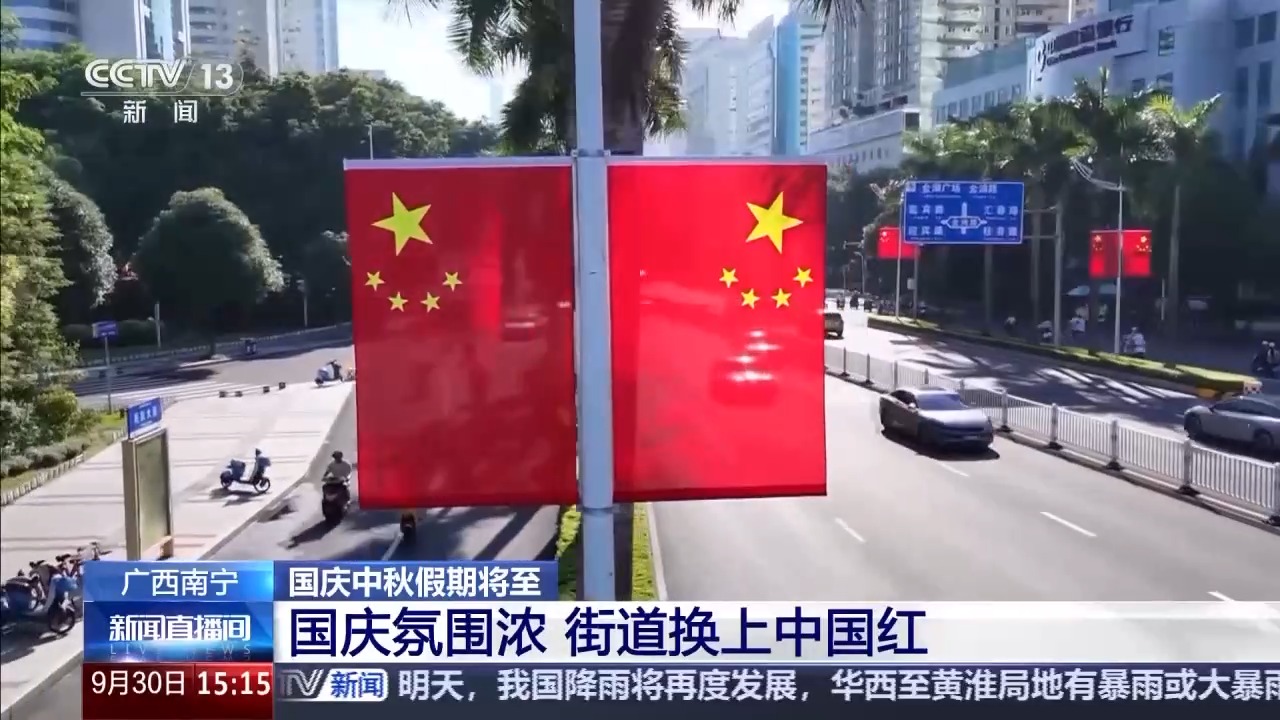 國慶節(jié)臨近,廣西、江蘇等地在城市道路、景區(qū)等區(qū)域掛上了國旗,營造出祥和的國慶氛圍。