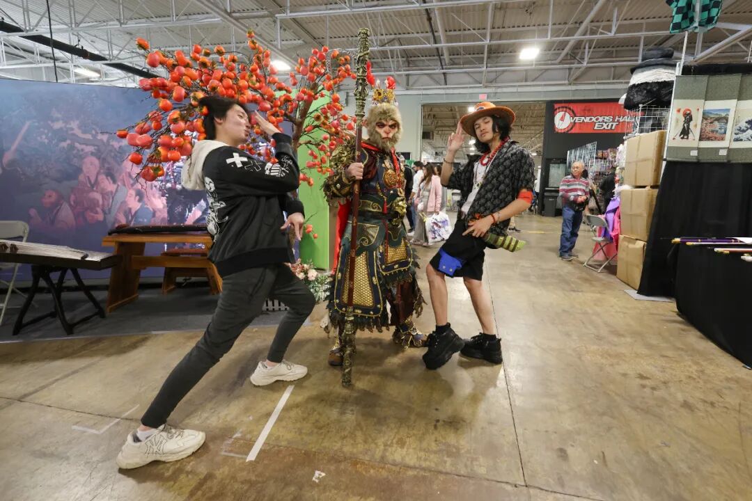 當地時間2025年5月25日,加拿大多倫多,在北美動漫節(jié)上,一位動漫coser(角色扮演者)以中國國產游戲《黑神話:悟空》的悟空形象現身,吸引動漫迷合影。中新社記者 余瑞冬 攝
