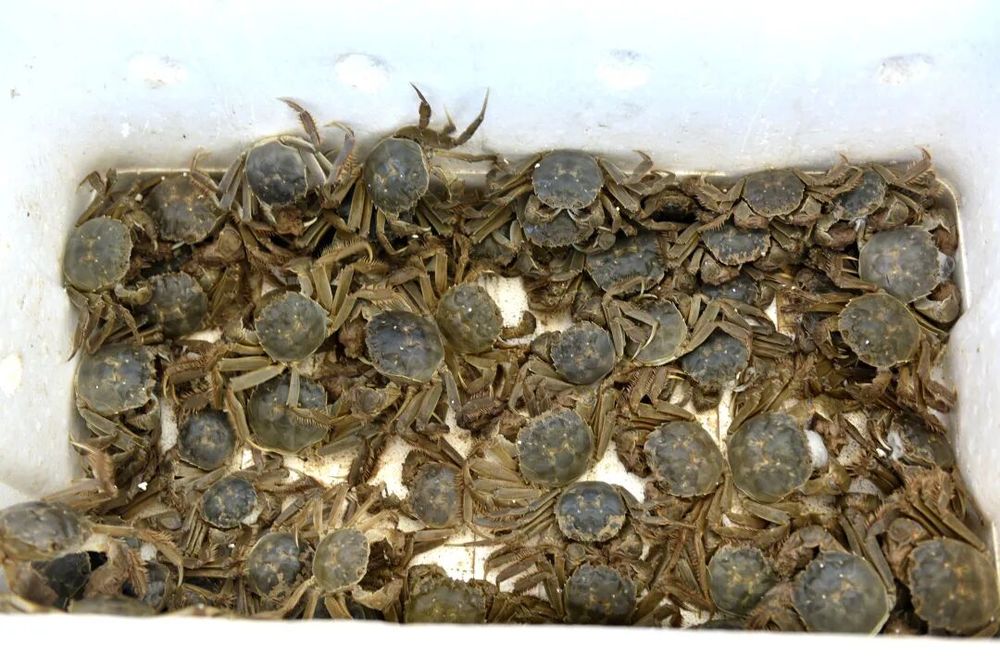 據(jù)介紹,遼寧毛蟹肉質(zhì)鮮嫩細膩,喜低溫環(huán)境,夏季生長較慢,至7月僅30克-40克,進入秋季后迅速增重至150克。判斷螃蟹是否成熟,可觀察其腿部:腿長且硬實即表示已長成。