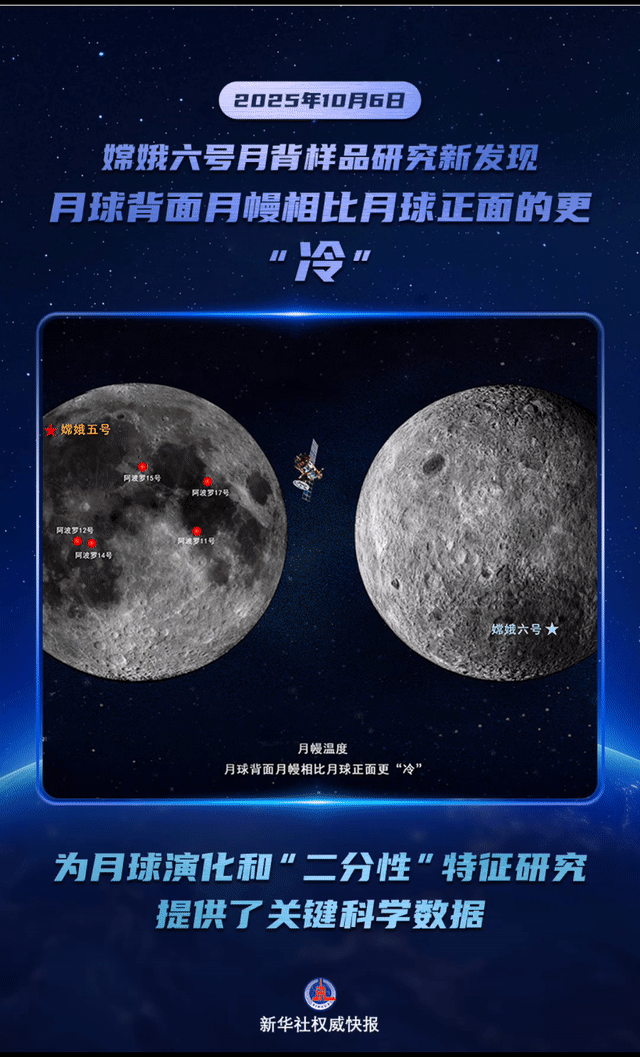 10月6日,時值中秋佳節(jié),國家航天局和國家原子能機構(gòu)聯(lián)合發(fā)布嫦娥六號月球背面樣品研究最新成果。我國科學(xué)家首次基于嫦娥六號月球背面樣品(月壤)研究發(fā)現(xiàn),月球背面月幔相比月球正面的更“冷”。