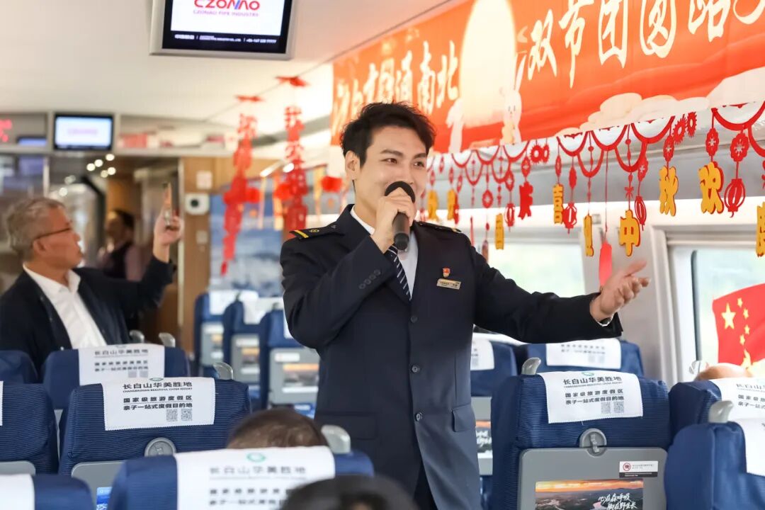 沈佳高鐵沈白段開通運(yùn)營后,迎來第一個國慶中秋假期。長春客運(yùn)段在長春至青島北的G3565次列車上舉辦“‘我的鐵路風(fēng)景’——沈白高鐵通南北 雙節(jié)團(tuán)圓路更捷”列車聯(lián)歡活動。