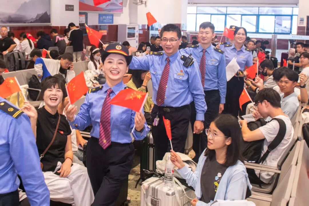 10月1日,廣州車務(wù)段惠州南站聯(lián)合站區(qū)兄弟單位開展“我的鐵路風(fēng)景”主題快閃活動(dòng)?,F(xiàn)場(chǎng)氣氛熱烈,工作人員與往來(lái)旅客合唱歌曲、歡聚一堂,以真摯的情感共同為祖國(guó)獻(xiàn)上生日祝福。
