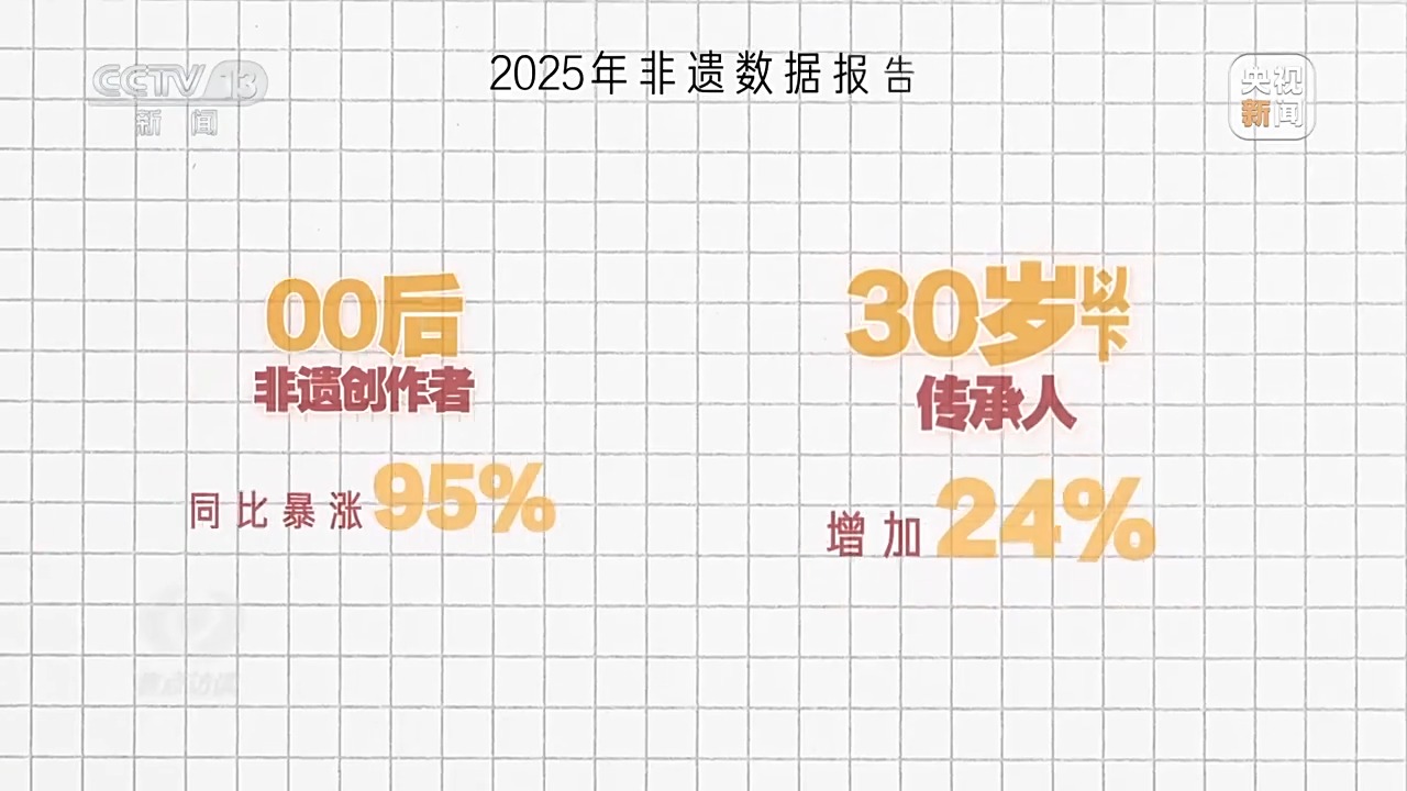 也許有人覺得這些故事太個別,所以我找到了某短視頻平臺今年的非遺數(shù)據(jù)報(bào)告,也很能說明問題。報(bào)告中提到,一年來00后非遺創(chuàng)作者同比暴漲95%,30歲以下傳承人增加24%。越來越多年輕人主動扛起了傳承的擔(dān)子。為啥他們愿意一頭扎進(jìn)這些“老行當(dāng)”?我找到了幾位新生代代表性傳承人,試著解開這份“偏愛”背后的密碼。