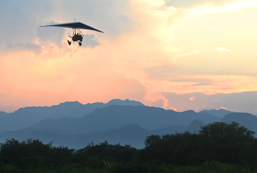 10月6日,游客在浙江省金華市武義縣大斗山飛行營(yíng)地乘坐動(dòng)力三角翼。新華社發(fā)(張建成攝)