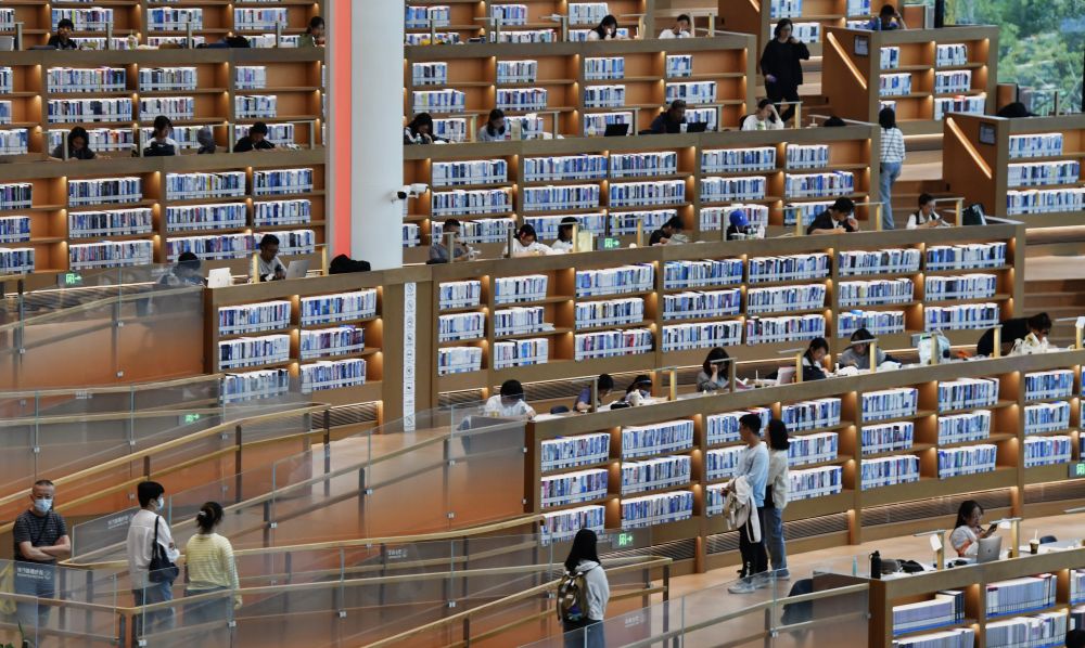 10月5日,市民在北京城市圖書(shū)館內(nèi)讀書(shū)。新華社記者 李欣 攝