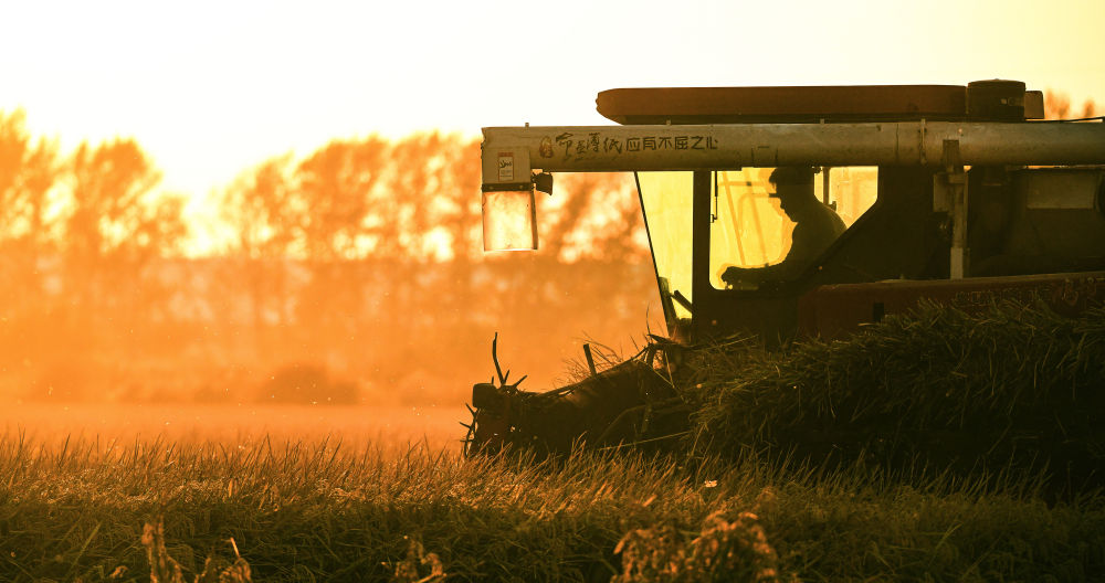10月3日,農(nóng)戶在北大荒集團(tuán)黑龍江八五六農(nóng)場(chǎng)有限公司第五管理區(qū)搶收水稻(無(wú)人機(jī)照片)。新華社發(fā)(黃永興攝)