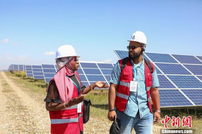 2025年9月12日,第九屆中非青年大聯(lián)歡代表團(tuán)和非洲記者團(tuán)一行來(lái)到青海省一光伏產(chǎn)業(yè)園區(qū),實(shí)地了解青海清潔能源發(fā)展。中新社記者 馬銘言 攝