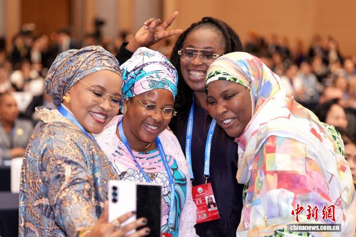 10月13日,全球婦女峰會(huì)全體會(huì)議在北京舉行。圖為與會(huì)代表在會(huì)前自拍留念。張祥毅 攝