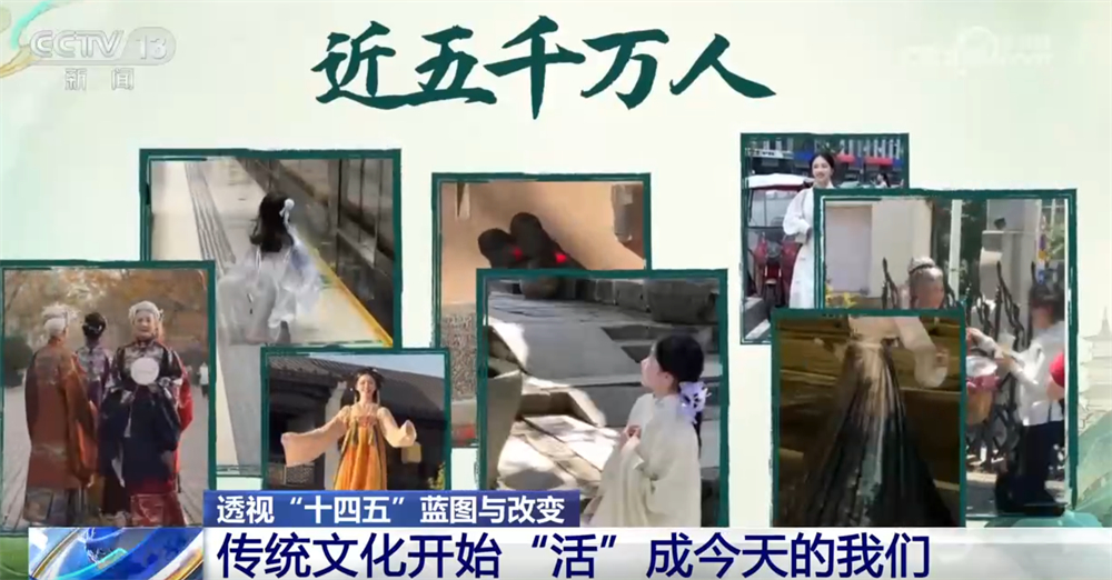 央視網(wǎng)消息:過去,我們在課本里背古詩、學(xué)歷史;今天,我們身著漢服走上街頭,在旅行打卡、短視頻創(chuàng)作中重新感受傳統(tǒng)。五千年的文化正在從書頁走向街頭,從展廳走進生活,成為我們?nèi)粘5囊徊糠帧!笆奈濉钡奈迥辏屛幕嬲盎睢痹诹水?dāng)下,也“活”進了我們的生活。