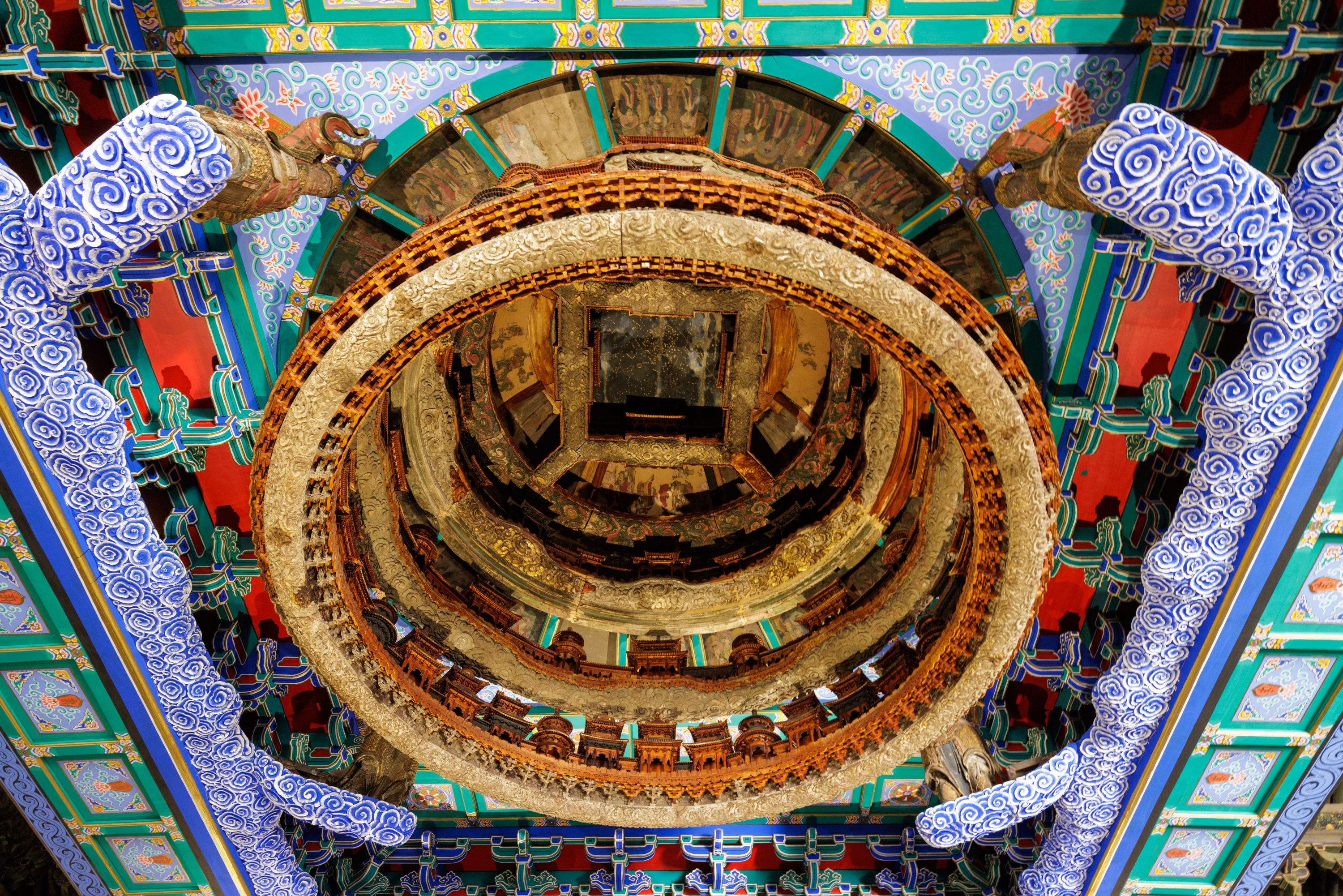 天宮藻井的實(shí)物共有六層,蓋井層的唐代星宿圖、中間層的68座天宮樓閣、四角的四大天王雕像……諸多藝術(shù)要素層層疊疊,共同構(gòu)建出了傳統(tǒng)文物的獨(dú)特美感。
