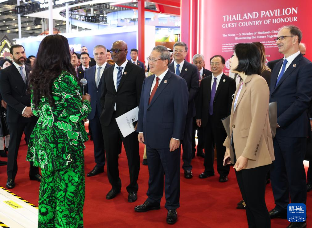 開(kāi)幕式前,李強(qiáng)參觀了企業(yè)展。開(kāi)幕式后,李強(qiáng)同與會(huì)外國(guó)領(lǐng)導(dǎo)人共同巡館。