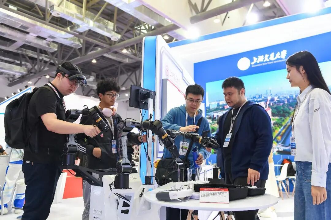 觀眾在第63屆高等教育博覽會上了解機(jī)械臂。新華社記者 張楠 攝