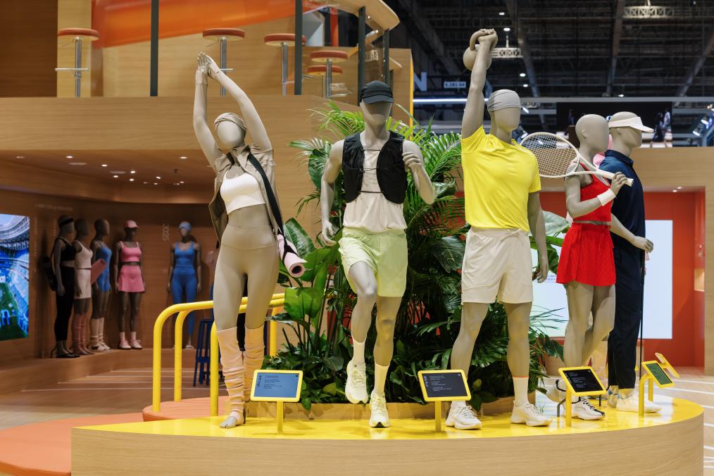 露露樂蒙展臺以“好狀態(tài)趣動場”為主題,展示品牌在瑜伽、跑步、訓練、網球、高爾夫和日常出行六大品類的明星產品。受訪者供圖