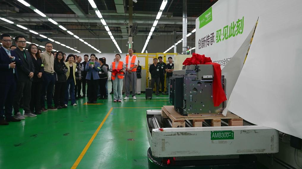 施耐德電氣全新升級的一款空氣斷路器產品在第八屆進博會現場首秀,并于7日在其上??禈蚬S正式下線。受訪者供圖