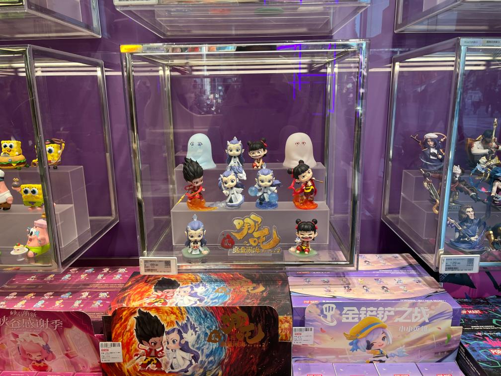 北京一家泡泡瑪特門店里陳列的哪吒系列手辦。新華社記者陽娜 攝