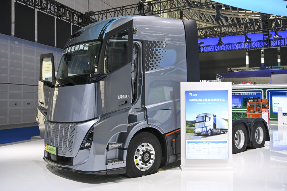 這是在2025年山西(太原)能源產(chǎn)業(yè)博覽會(huì)上展示的一款醇?xì)潆妱?dòng)牽引車(9月27日攝)。新華社記者 楊晨光 攝