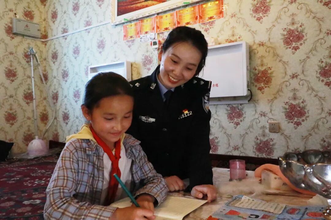 “西極愛心小分隊”家訪后了解到阿麗娜的家庭情況,民警沈美穎便成為這位柯爾克孜族姑娘的“知心姐姐”,多次到家中輔導功課,通過聊天談心鼓勵阿麗娜認真學習。