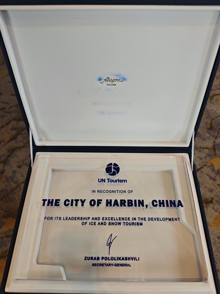 聯(lián)合國旅游組織授予哈爾濱“世界冰雪旅游卓越城市”稱號。(哈爾濱市委宣傳部供圖)