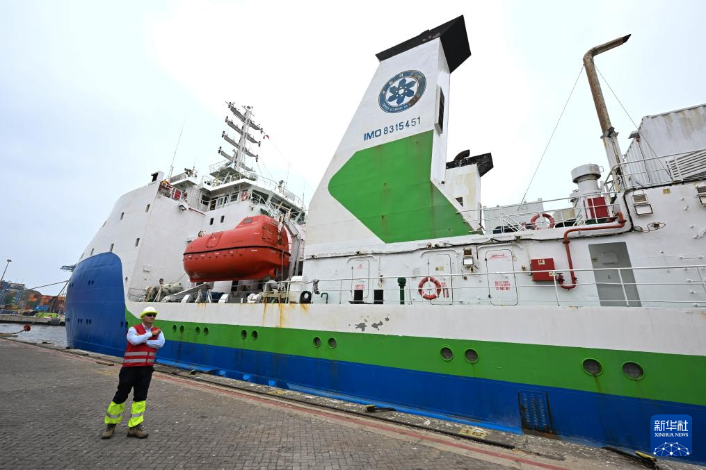這是1月19日拍攝的??坑谥抢胁客郀柵寥R索港的中國(guó)“探索一號(hào)”科考船。新華社發(fā)(豪爾赫·比列加斯攝)