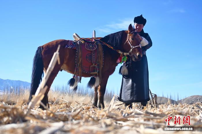 1月6日,其烏摳與自家馬兒在草場(chǎng)漫步。李亞龍 攝