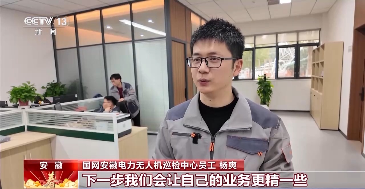 國網(wǎng)安徽電力無人機(jī)巡檢中心員工 楊爽:下一步我們會(huì)讓自己的業(yè)務(wù)更精一些。技術(shù)發(fā)展這么快,我們得跟緊時(shí)代的步伐。