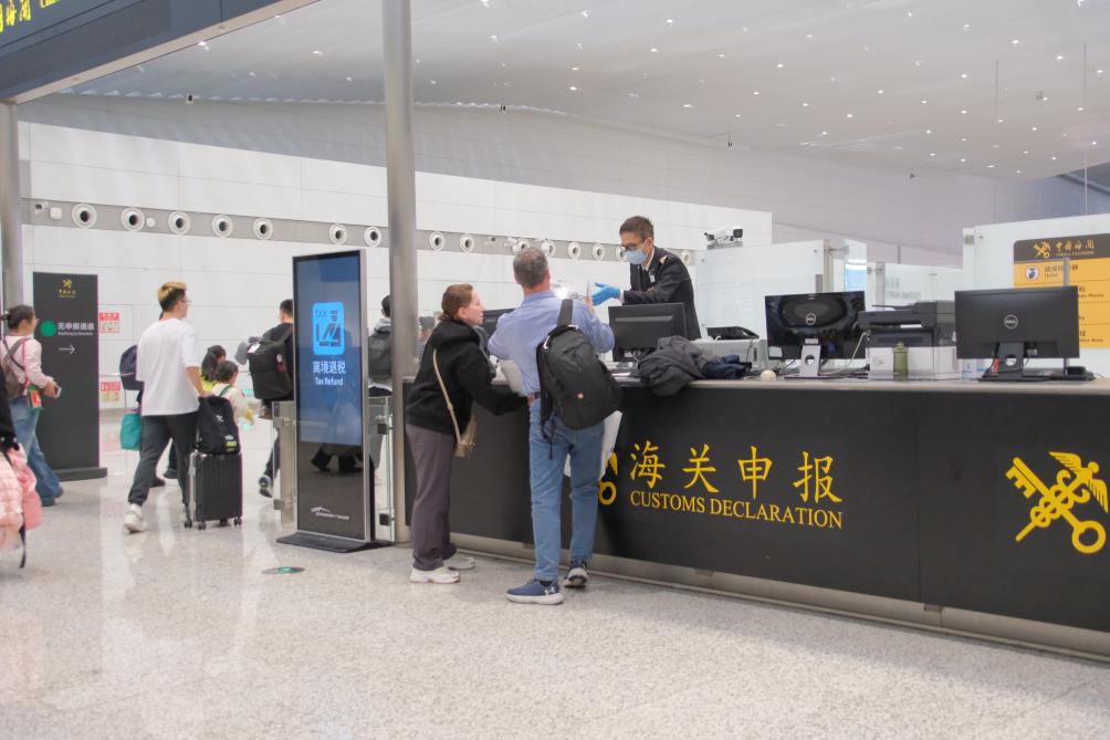 2月23日,廣州白云機場海關關員在出境申報臺為旅客辦理離境退稅驗核業(yè)務。(受訪者供圖)