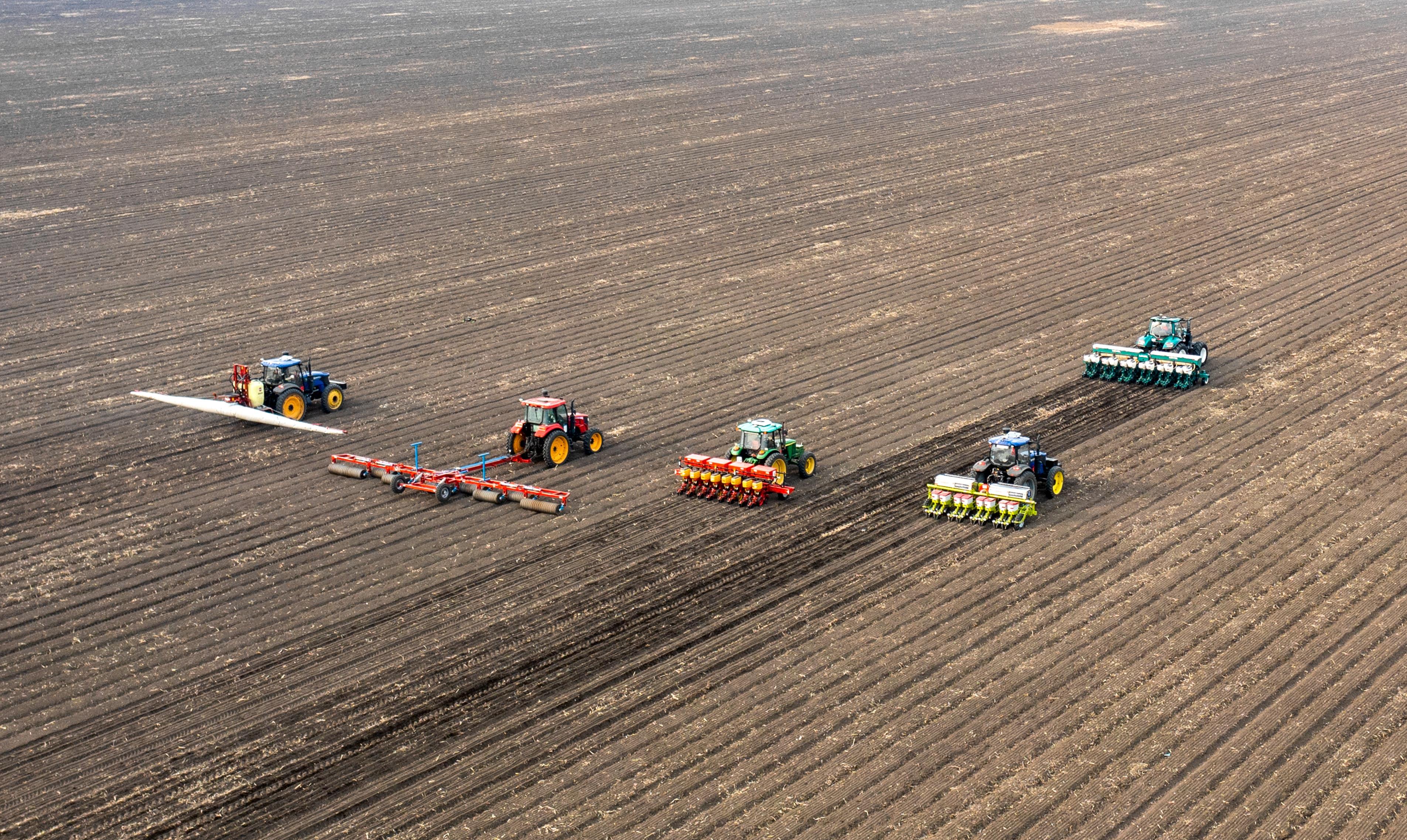 2023年春,黑龍江雙鴨山,北大荒農(nóng)業(yè)股份友誼分公司第五管理區(qū)玉米智能機(jī)械化作業(yè)播種現(xiàn)場。