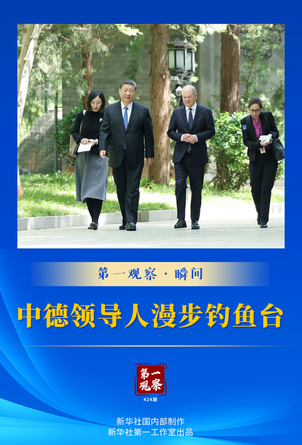新華社記者的鏡頭,記錄下中德兩國領導人一起散步交流的畫面——