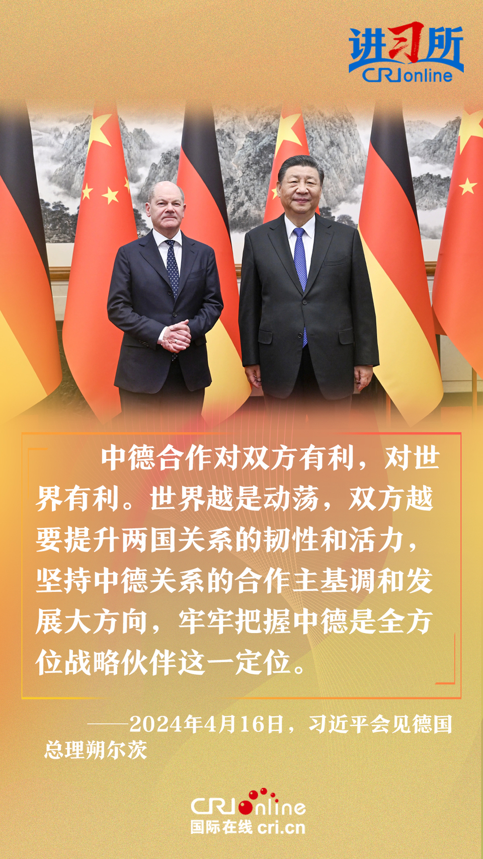 4月16日上午,中國(guó)國(guó)家主席習(xí)近平在北京釣魚臺(tái)國(guó)賓館會(huì)見了德國(guó)總理朔爾茨。習(xí)近平指出,中德合作對(duì)雙方有利,對(duì)世界有利。世界越是動(dòng)蕩,雙方越要提升兩國(guó)關(guān)系的韌性和活力。中德是世界第二、第三大經(jīng)濟(jì)體,鞏固和發(fā)展中德關(guān)系的意義超越雙邊關(guān)系范疇,對(duì)亞歐大陸乃至整個(gè)世界都有重要影響。兩國(guó)要從長(zhǎng)遠(yuǎn)和戰(zhàn)略角度看待和發(fā)展雙邊關(guān)系,攜手為世界注入更多穩(wěn)定性和確定性。