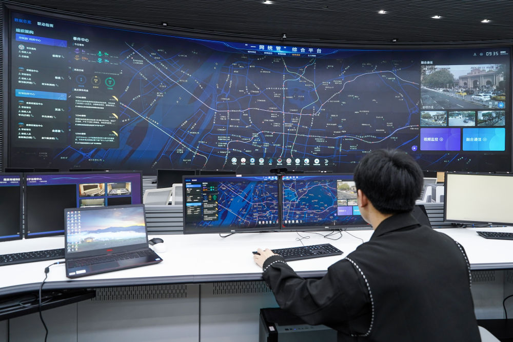 工作人員在江蘇省南京市城市運行管理中心指揮大廳操作“一網(wǎng)統(tǒng)管”指揮調度系統(tǒng)(2024年4月11日攝)。近年來,南京市積極構建數(shù)字化、智能化、智慧化城市治理體系,將城市運行“一網(wǎng)統(tǒng)管”作為推進城市數(shù)字化轉型、城市治理體系和治理能力現(xiàn)代化的重要工作。