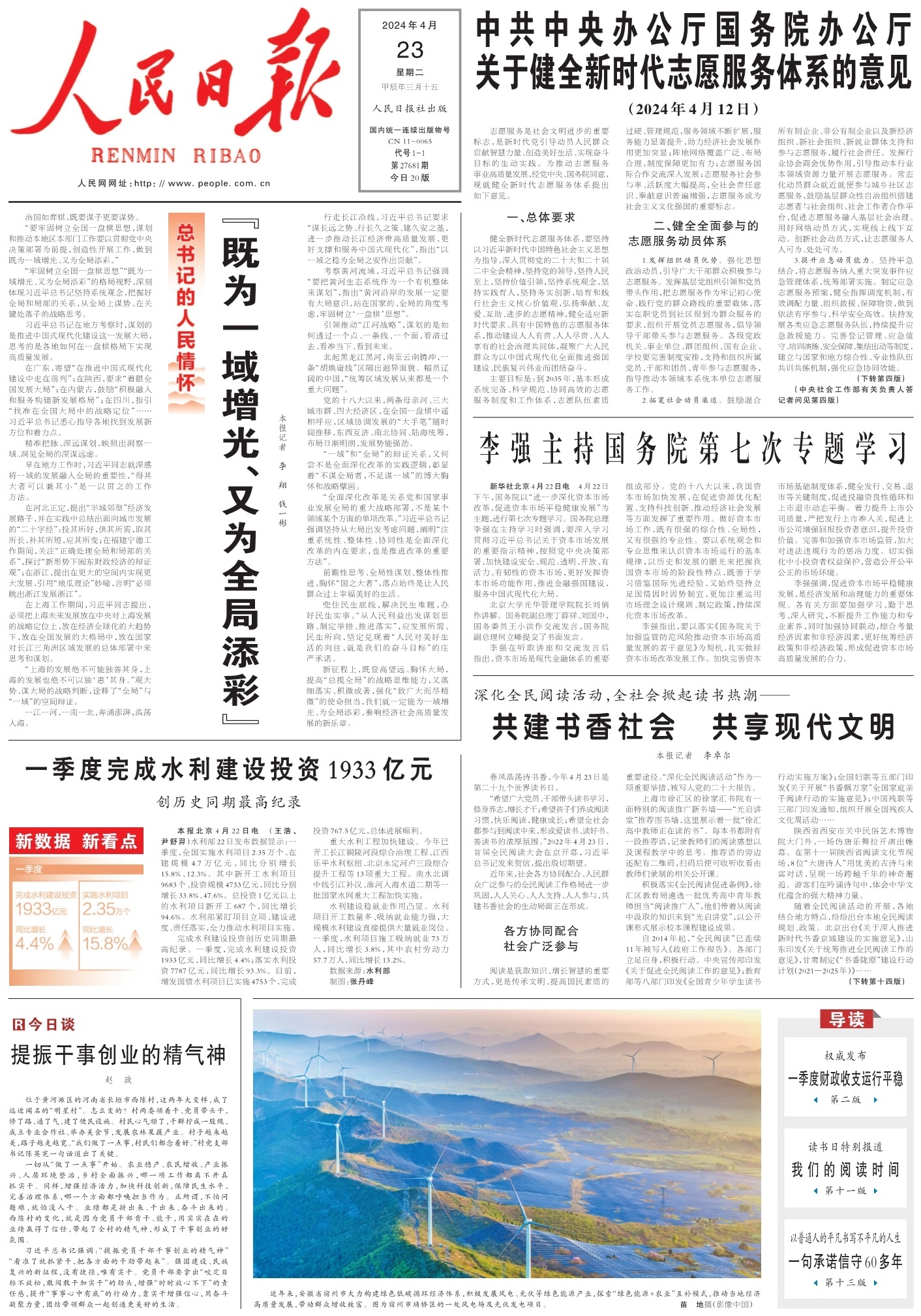 前瞻性思考、全局性謀劃、整體性推進(jìn),胸懷“國之大者”,落點始終是讓人民群眾過上幸福美好的生活。