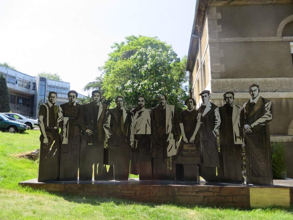 在里昂中法大學(xué)歷史博物館前方,屹立著廣州市政府贈(zèng)送的雕像。蔡元培、常書(shū)鴻等10位與里昂中法大學(xué)關(guān)系密切的中國(guó)學(xué)者眺望前方,注視著來(lái)來(lái)往往的留學(xué)生。
